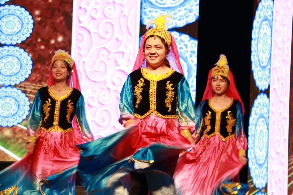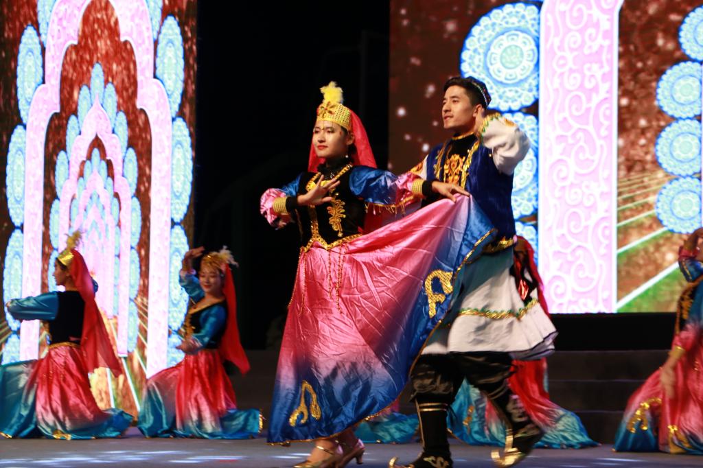 时代江水奔流入海,改革薪火代代相传。大合唱《我爱你中国》动人心弦,唱出了莘莘学子对祖国的赞美与祝福。由经管学院精心推出的民族舞蹈《盛世欢腾》带领观众走进美丽富饶、幅员辽阔的大美新疆,学生们曼妙的舞姿、跳跃的鼓点将民族元素、中国烙印展现在满含异域风情的舞步里,舞出了经管学子团结向上的精神风貌,舞出了五十六个民族手足相亲,守望相助,舞出了对祖国母亲繁荣昌盛的美好祝愿,呈现出一派中华民族大团结、繁荣、朝气蓬勃的景象,场下欢呼掌声迭起,掀起晚会的小高潮。