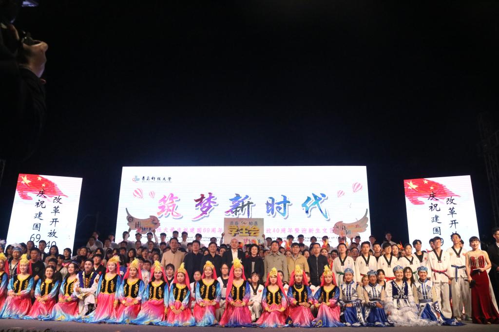 为庆祝中华人民共和国成立69周年,庆祝改革开放四十周年,10月12日晚,bat365官方官网“筑梦新时代”迎新文艺晚会于崂山校区南苑操场隆重举行。晚会共分为三个篇章——改革路、新时代、青春志,经管学院选送的民族舞蹈《盛世欢腾》和说唱节目《青春志》亮相舞台,向全校师生展现了经管学子的青春风采。