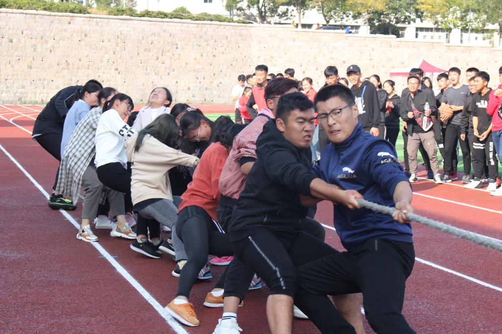 趣味场上以班级为单位进行“疯狂毛毛虫”、“欢乐跳大绳”、“无敌风火轮”、“拔河”等集体项目的比拼。同学们热情洋溢、团结奋进,在汗水与欢笑中领略着运动的魅力、友谊的力量。