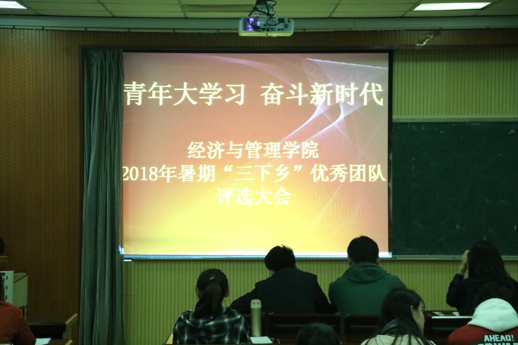 为深入学习贯彻习近平新时代中国特色社会主义思想,进一步贯彻“青春大学习、奋斗新时代”的重要精神,培养新时代大学生的担当使命感,11月14日晚,经管学院于419室召开暑期“三下乡”社会实践汇报大会,分团委副书记兼学工办副主任王辰、分团委全体老师参加了会议。