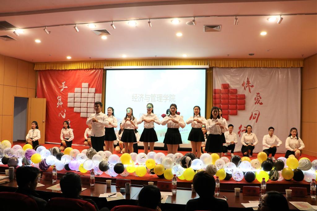 在主持人激情昂扬的开场白之后,手语操汇演徐徐展开。各学院代表队倾情表演,各显风采。经管学院代表队第四个出场,在《爱,因为在心中》的温情音乐下登上舞台,轻柔灵动的指尖,整齐划一的动作,他们用手之舞,表心之语,传递出浓浓的爱心,用真情演绎感染了在场的每一位观众。最终,经管学院代表队荣获三等奖。