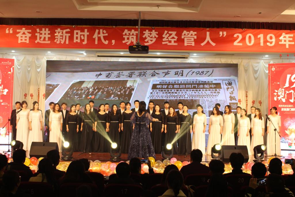 为庆祝澳门回归19周年,凝聚发展正能量,12月20日晚,经管学院“奋进新时代,筑梦经管人”2019年新年联欢晚会于崂山校区第二报告厅成功举行。校党委副书记张元利、组织部部长聂法良、统战部部长陈洪宗、学生处处长陈刚、保卫处处长王伟、后勤处处长郭永、工会副主席徐瑞成、团委副书记张玉、宣传部副部长李鲲鹏、学院领导、全体老师、各兄弟学院老师、学生会主席及18级全体学生共计800余人共同观看了晚会。