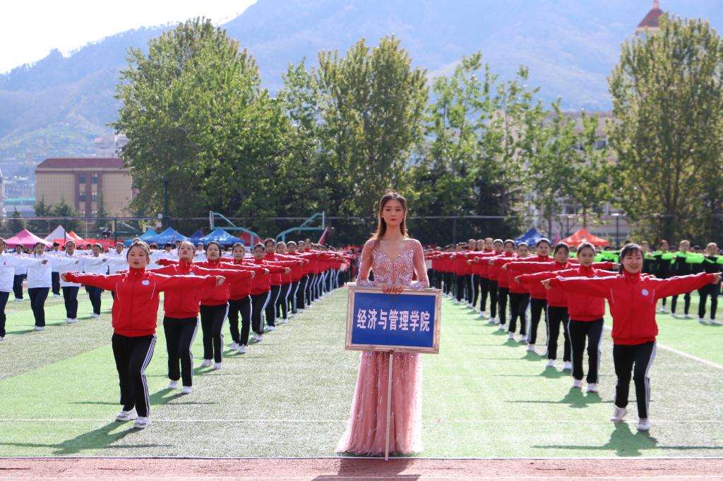 上午7点半,运动会正式拉开序幕,各学院代表队踏着激昂的运动员进行曲入场,经管学院方阵身着统一院服,用整齐坚定的步伐,铿锵有力的口号展现了昂扬向上的精神风貌,他们手中拿着花团,用队形变换出70的数字,为祖国70华诞献礼。在开幕式的校广播操决赛中,经管学院广播操代表队动作娴熟到位,姿态张弛有度,充盈着刚健之美,洋溢着青春气息,凭借凭借扎实的基本功,饱满的精神状态荣获三校区第二名的好成绩。