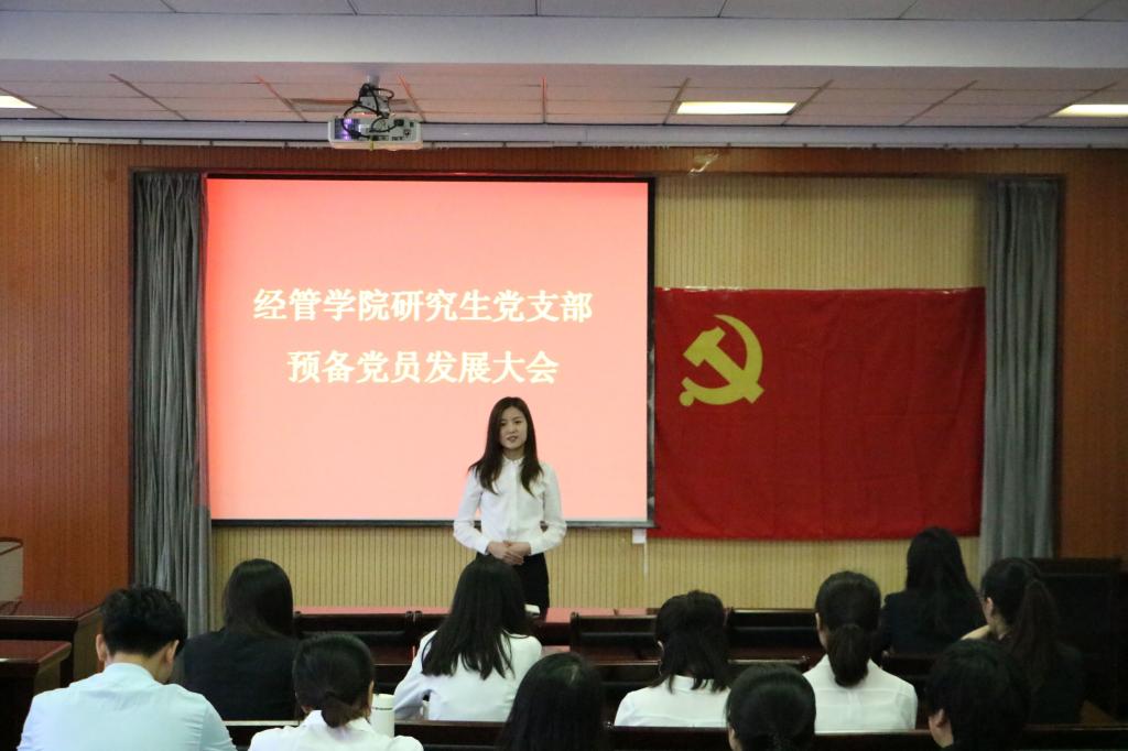 6月13日晚,经管学院研究生党支部在经管419召开了支部会议暨“不忘初心 牢记使命”主题教育。本次支部会议包括发展对象推优入党、预备党员转正、研究生支部支委换届选举及“不忘初心、牢记使命”为主题教育四项内容。会议由经管学院党总支副书记兼副院长、研究生党支部书记刘跃宁主持,全体研究生党员参加了此次会议。