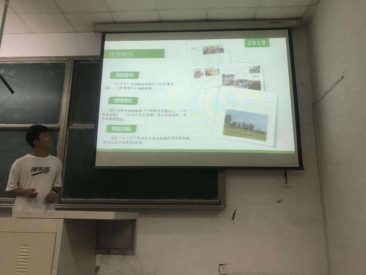 15支社会实践团队围绕社会主义核心价值观宣讲、爱心支教、专业实践、精准扶贫、社会调研等方面开展的实践活动进行了展示。一张张生动鲜活的实践图片,展示出青年学子的青春风采;一组组详实直观的实践数据,承载了青年学子的辛勤所得;一个个奉献社会的动人故事,展现出青年学子的责任担当;一句句厚重质朴的实践感言,反映了青年学子的成长蜕变。汇报结束后,分团委张晓帆老师对各团队的汇报进行了点评。