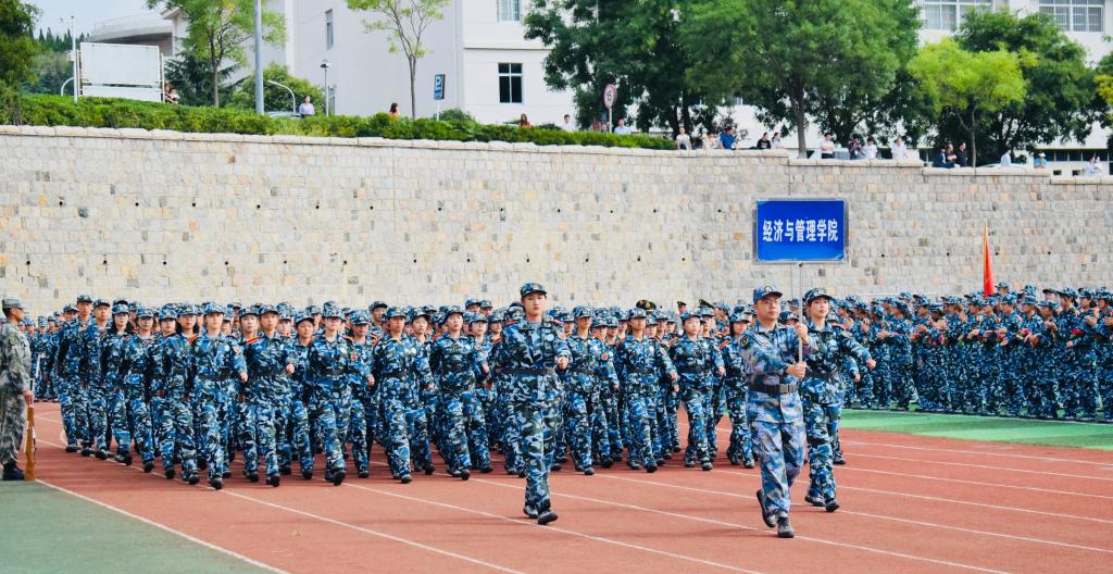 成果汇报大会上,四营方队昂首阔步,动作精准,把军人的干练作风体现得淋漓尽致,响亮的口号贯彻云霄,突显出社会主义新时代青年人的精神风貌。丰硕的成果取得有赖于学院对于新生全员、全程、全方位的教育和关怀。从学院、辅导员再到班主任、领跑学长,全力配合教官要求,严格保证军训效果,教官与辅导员密切联系,出现问题,实时通讯,争取在第一时间妥当解决。学院延续“领跑学长”的优良传统,从高年级学生中选取学业成绩优异、综合表现突出的学生干部担任“领跑学长”,作为经管学院的特色管理方式之一,坚持以生帮生,以生管生,以生促生,在军训期间对新生们的学习、生活做到全方位的关心和照顾。