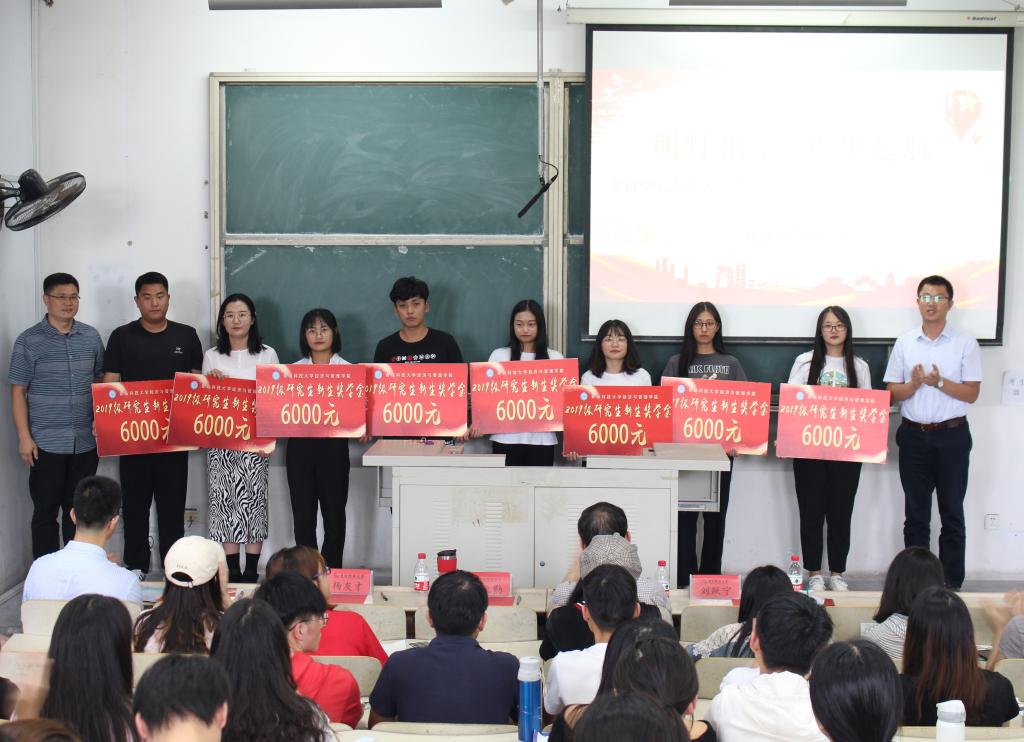 以青春之名,共赴梦想之约。会议伊始,经管学院副院长杨友才宣读颁奖文件及2019级研究生新生奖学金获得者名单。由校研究生院副院长徐立勋、经管学院党总支副书记兼副院长刘跃宁为获奖同学颁奖,会上络绎不绝的掌声是对获奖同学最大的支持与赞美。随后,院长王志宪在发言中着重强调了三点:一要目标明确,志向坚定。考研进入加速阶段,要明确自己的方向,切勿盲目跟从。二要锲而不舍,铁杵成针。科学合理规划复习时间,良好平衡复习节奏和进度;三要勤学笃志,厚积薄发。在最后冲刺的88天里,将胸中志化为脚下行,真材励行,亮剑考研。王院长同时对2019级研究生新生提出要求,鼓励其在经管学院的科研平台上,不负众望,潜心深造。