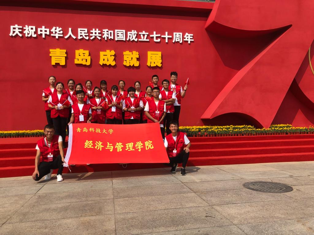 为庆祝新中国成立70周年,加强爱国主义教育,增强经管学子爱国热情,9月29日,经管学院选派71名志愿者赴青岛国际会展中心开展“庆祝中华人民共和国成立70周年青岛成就展”志愿活动。