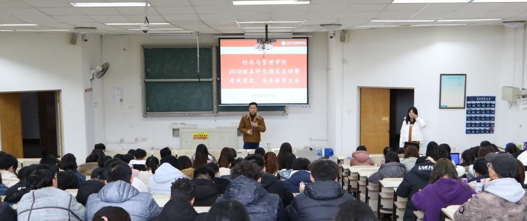 为增强学生安全防范意识,普及消防、防诈骗等安全常识,同时推进考风教育和学风建设,贯彻落实学校学院关于期末安全教育和考风考纪的工作要求,12月17日,经管学院2018级本科生于弘毅楼E202室分专业召开期末总结暨安全教育、考风考纪大会。本次大会由18级辅导员高守朋老师主持,18级全体学生参加。