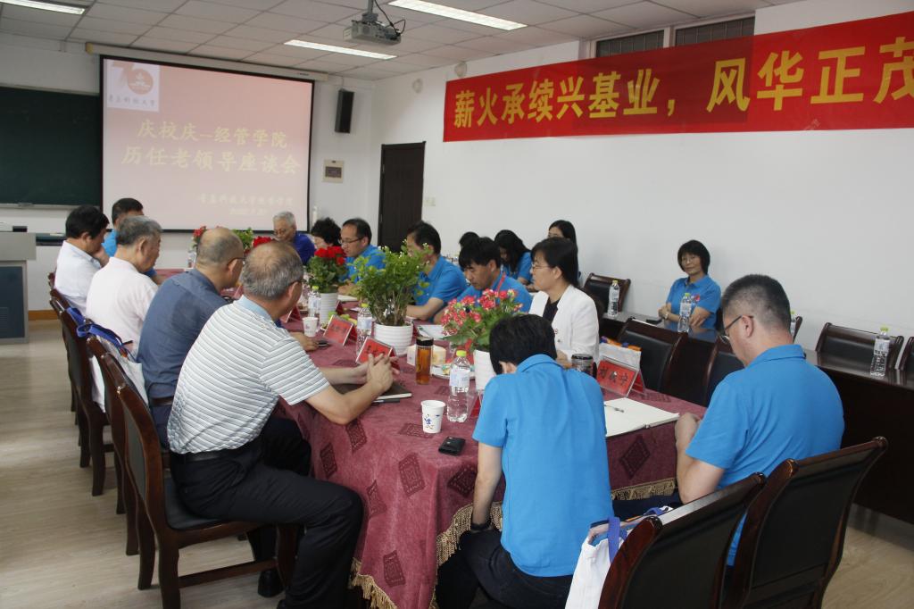 喜迎七秩华诞,共叙经管情怀。值上下同庆、共襄盛举的校庆之日,经管学院诚挚邀请历任老领导和优秀校友代表“回家”,于经管学院419室圆满召开历任老领导座谈会。经管学院现任领导班子、历任老领导及优秀校友代表参加座谈会,经管学院党委书记李德成主持座谈会。