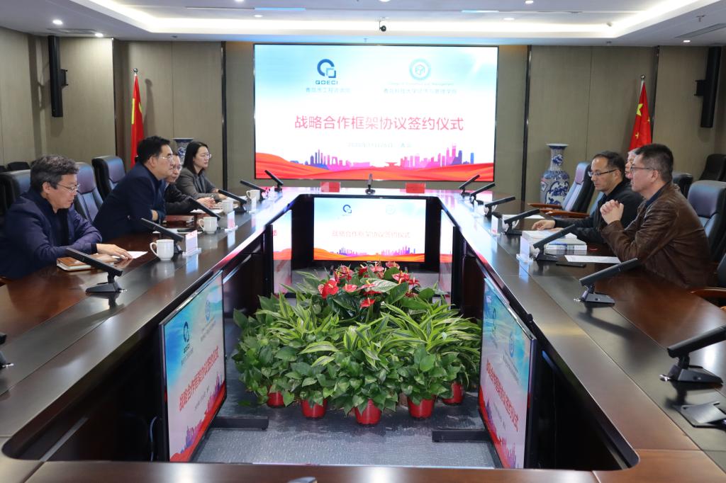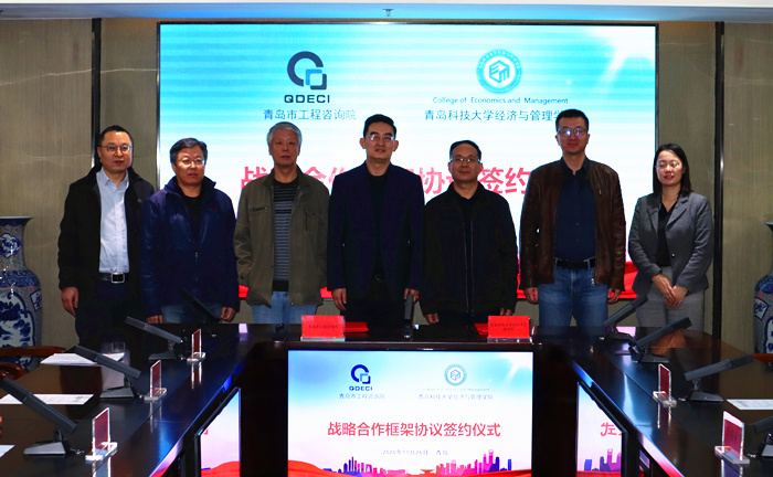 随后,李勋来院长和张云峰院长共同签署框架协议。协议的签订旨在加强产学研深度融合,打造更高水平的智力服务平台,更好服务青岛经济社会发展。