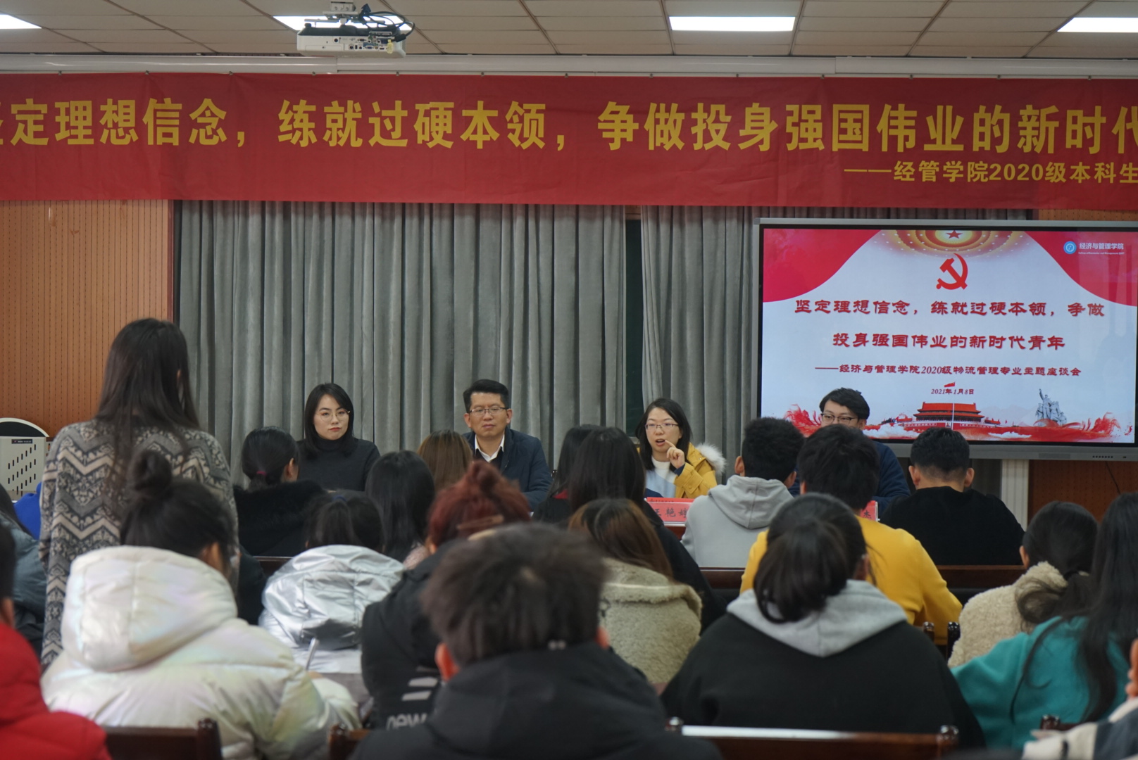 为积极响应学校机关处级干部联系学生班级通知精神,坚持以学生为本理念,深入了解学生需求,推动立德树人根本任务落实落细。1月8日下午,经管学院2020级物流管理专业期末交流会于经管楼504会议室举行,党委(校长)办公室副主任步德胜出席座谈会并与同学们亲切交流。2020级物流管理专业班主任王艳婷、2020级辅导员及城市管理专业全体同学参加,座谈会由2020级辅导员付凯主持。