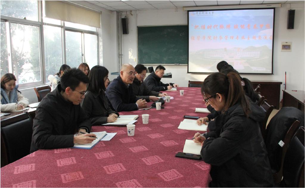 1月12日,校长陈克正来到经管学院,与联系班级2019级财务管理专业全体同学开展“把握时代脉搏,赋能青春梦想”主题座谈会,和同学们进行亲切交流。经管学院党委书记李德成及全体辅导员参加本次活动。