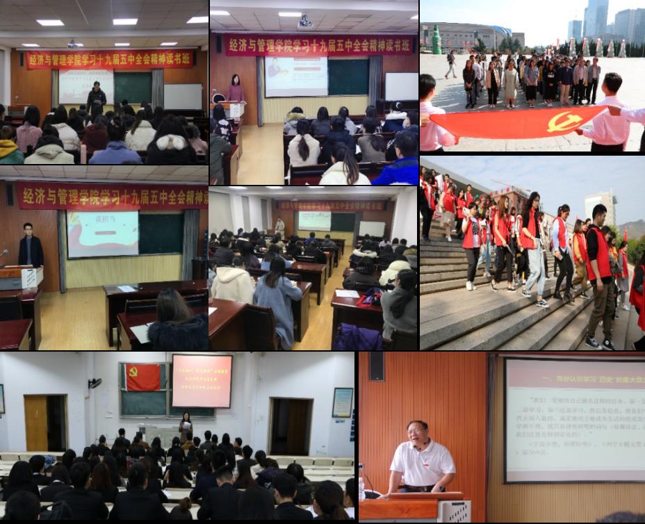 经管学院党委下设10个党支部(其中教工支部7个,学生支部3个),共有教职工党员64人,学生党员112人,实现教工党支部书记“双带头人”全覆盖。学院党委深入学习贯彻习近平新时代中国特色社会主义思想,认真贯彻落实学校“三个六”党建工作总体要求,突出目标驱动,问题导向,坚持刀刃向内,打造经管学院“领航工程”党建品牌,努力推动党建与业务工作深度融合、同频共振,切实引领全院师生以新姿态、新风貌促进各项工作上水平、见实效。三年来,学院获17-19聘期考核优秀单位,学院党委获山东省高校组织工作创新奖三等奖、在青高校基层党建创新工程项目各1项,获校宣传工作先进集体、先进思想政治工作集体等多项荣誉,1个支部获2018年省样板党支部,5个党支部获评校五好党支部,5人获校优秀党务工作者(党员)。