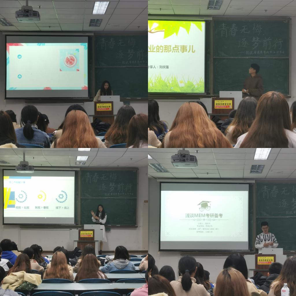 4月25日晚,物流管理专业于明德楼322教室举办“青春无悔,逐梦前行”考研考公经验分享会。此次分享会邀请了2020年考研、考公成功的七位学长学姐为参加分享会的18、19和20级同学进行面对面的经验分享与交流。会议由物流管理系主任索琪主持。