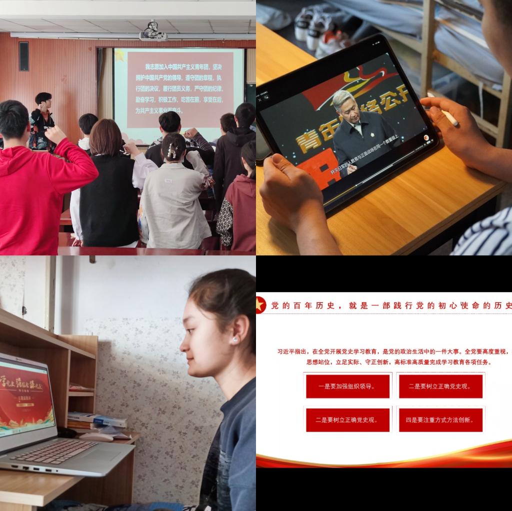 同上一节团课,凝聚榜样力量。五四青年节当天,学院组织全体团员青年同上由共青团中央和全国学联组织开展的“学党史、强信念、跟党走”主题云团课,通过观看影像资料、网络云走访、学习青年典型等,深度发掘青年力量,深刻体悟中国共产党波澜壮阔的百年征程。同时,经管学院各团支部积极组织开展党史学习教育、五四精神主题团课,组织团员学习《中国共产党简史》等书籍,并重温入团誓词,深刻领悟中国共产党为什么“能”、马克思主义为什么“行”、中国特色社会主义为什么“好”。学子纷纷表示,作为新时代的青年,我们应该做到立大志、明大德、成大才、担大任,积极锤炼自身品德,走好新时代“赶考路”。