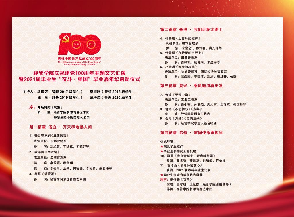 今后,经管学院将创新丰富“文化活动+思想教育”结合的育人模式,将党史学习教育、理想信念教育、爱校荣校教育等融入其中,为培养中国特色社会主义合格建设者和可靠接班人而努力奋斗!
