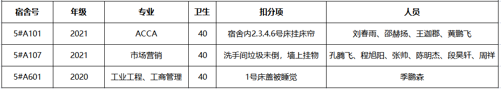 卫生检查结果及扣分细则请见附件,请各年级对照问题监督好不合格宿舍的整改。