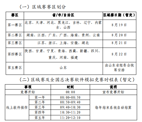 注:上表时间仅供参考,以实际发生为准。若出现某赛区参赛团队数量特别多,竞赛组委会将视情况分为上下午进行竞赛,一切以组委会通知和实际发生为准。若参赛团队无法按时提交决策,视同弃权