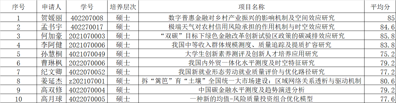 根据《bat365官方官网研究生自主科研创新项目申报通知》要求,按照学生自主申报、形式审查、组织专家评审程序对10位申报同学进行评审。根据通知要求,经管学院限额2名,现学院推荐何加豪、贺媛丽两位同学到研究生院审批,现对结果进行公示,公示期为:2023年7月31日-8月4日(5个工作日)。