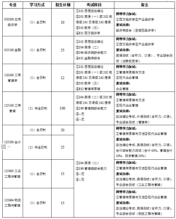 备注:表中招生计划为2024年招生计划人数,2025年招生计划人数请关注经管学院官网和公众号,待学校公布后再更新。