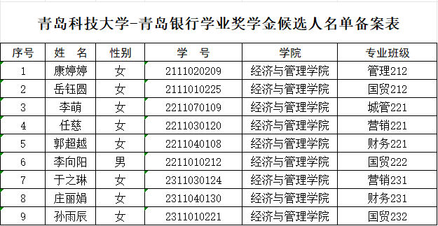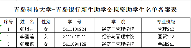 【公示】经管学院2024年度青岛银行奖助学金名单公示