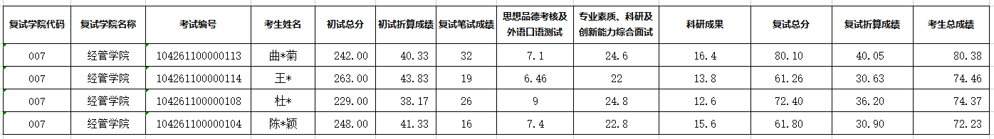 【公示】bat365官方官网2021级化工技术经济及管理专业博士复试成绩公示
