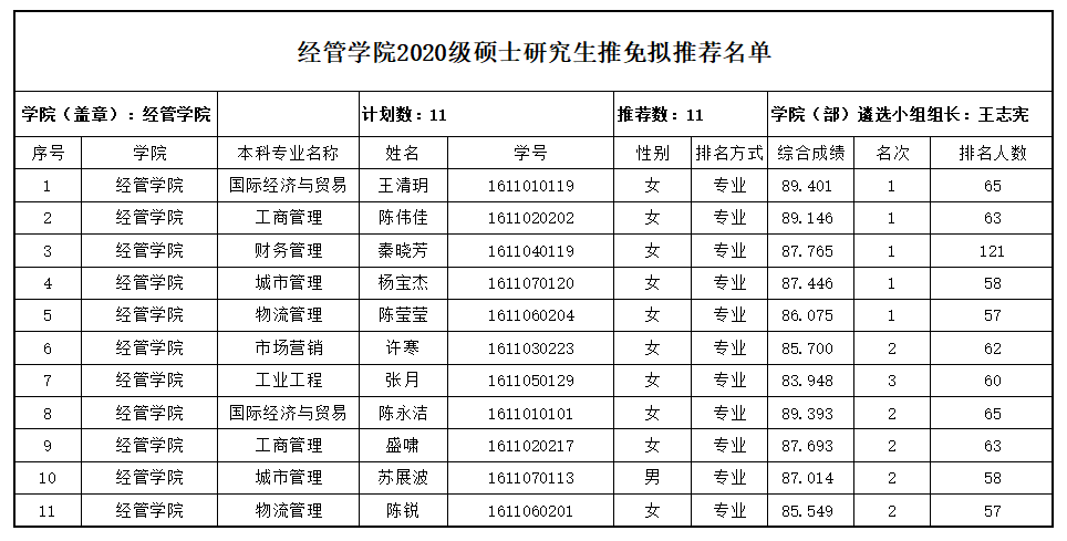 根据《bat365官方官网推荐优秀应届本科毕业生免试攻读硕士学位及直接攻读博士学位研究生工作管理办法》、《bat365官方官网2020级硕士研究生推免工作安排》,现将经管学院2020级硕士研究生推免拟推荐名单公示如下,公示期3个工作日,公示时间:2019年9月10日-2019年9月12日。
