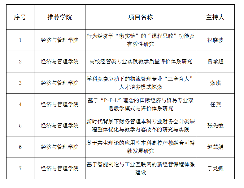 2020年bat365官方官网本科教改项目申报我院教师共申报10项,学院申报限额为7项。学院组织专家进行评审,根据评审成绩排序拟推荐以下7项入选,名单公示如下: