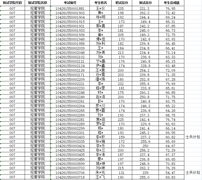 【公示】bat365官方官网经管学院2021年硕士研究生复试成绩公示2