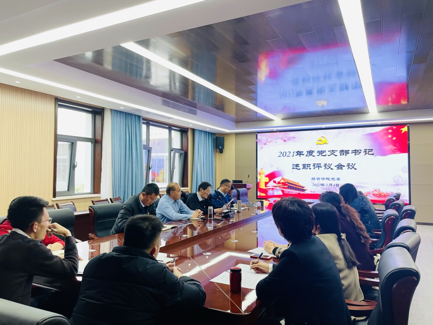 为全面检验党支部基层党建工作成效,推动全面从严治党向基层延伸,1月4日下午,经管学院党委召开2021年度党支部书记述职评议会议。学院党委领导班子、各党支部书记及党委干事参加会议。会议由院党委书记李德成主持。