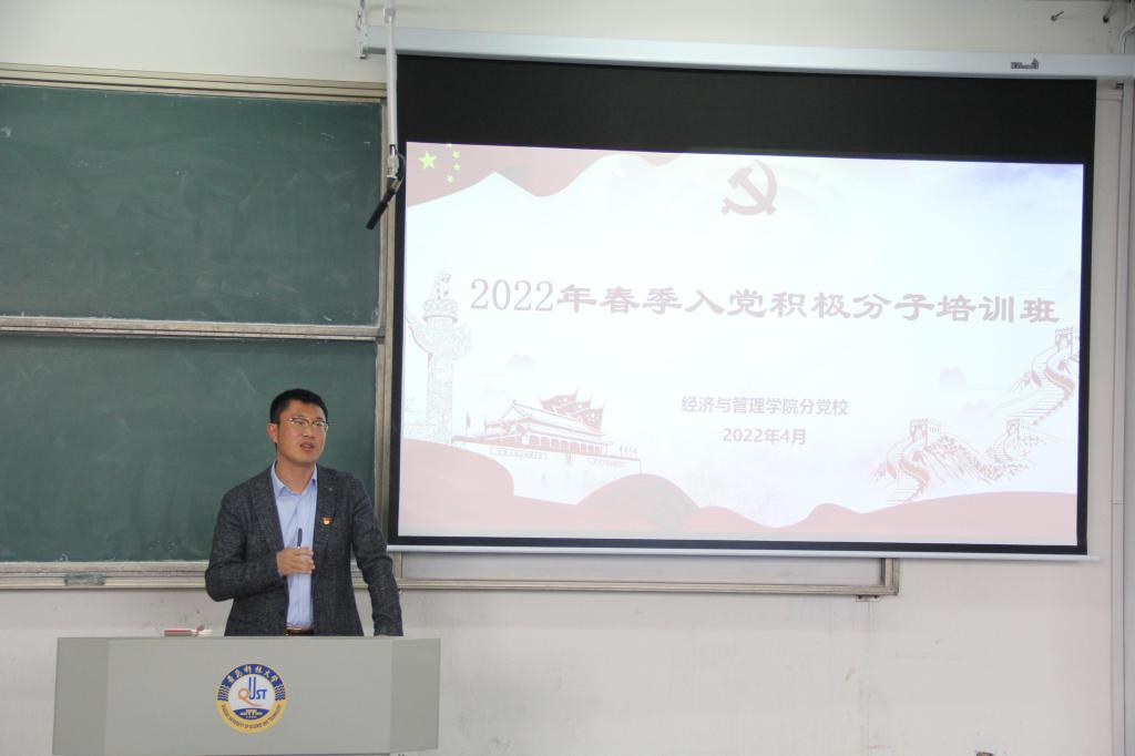 为深入贯彻落实中共bat365官方官网委员会党校关于2022年春季入党积极分子线下培训通知要求,进一步提高入党积极分子政治素质和理论水平,把好发展党员“入口关”,教育引导入党积极分子认真学习党的基本理论知识,加强党性修养,提高政治觉悟,经管学院分党校于4月26日下午在弘毅楼E301举办2022年春季入党积极分子线下培训班。经管学院党委书记、分党校校长李德成,党委副书记、分党校副校长刘跃宁为党课主讲人,学院全体专兼职辅导员、各学生党支部书记、本期96名入党积极分子参与培训班学习。会议由学院党委干事付凯主持。