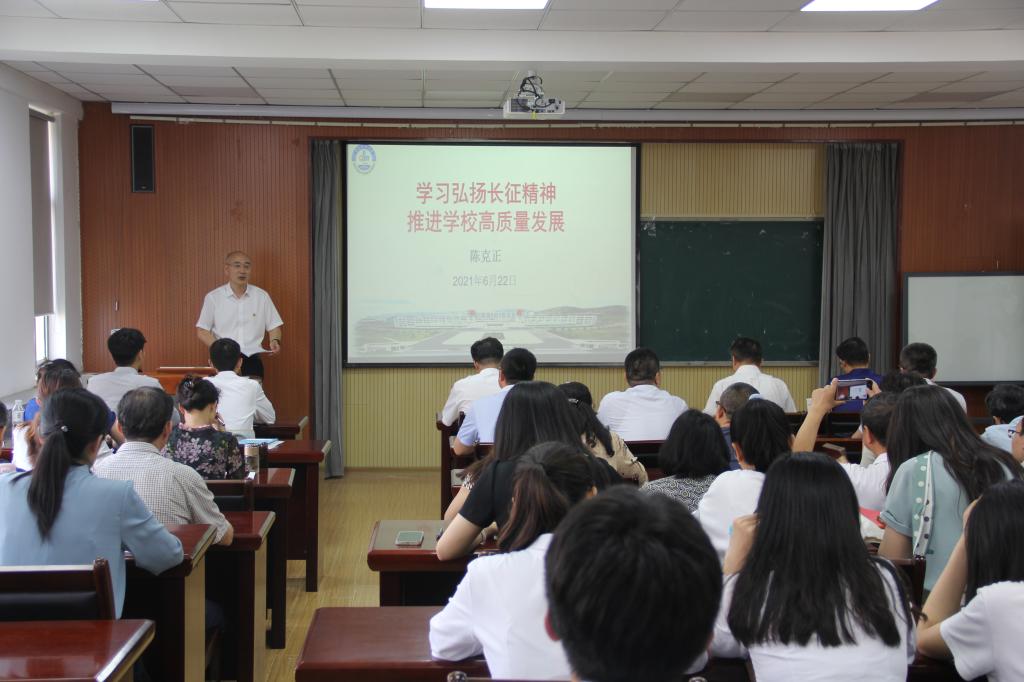 6月22日下午,校长陈克正以“学习弘扬长征精神 推进学校高质量发展”为题,为经管学院全体党员讲授专题党课。