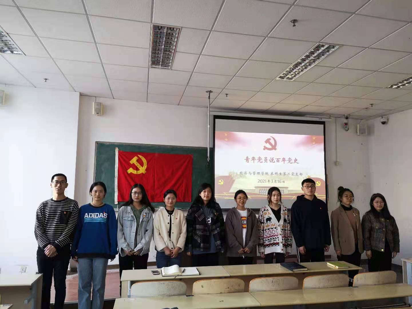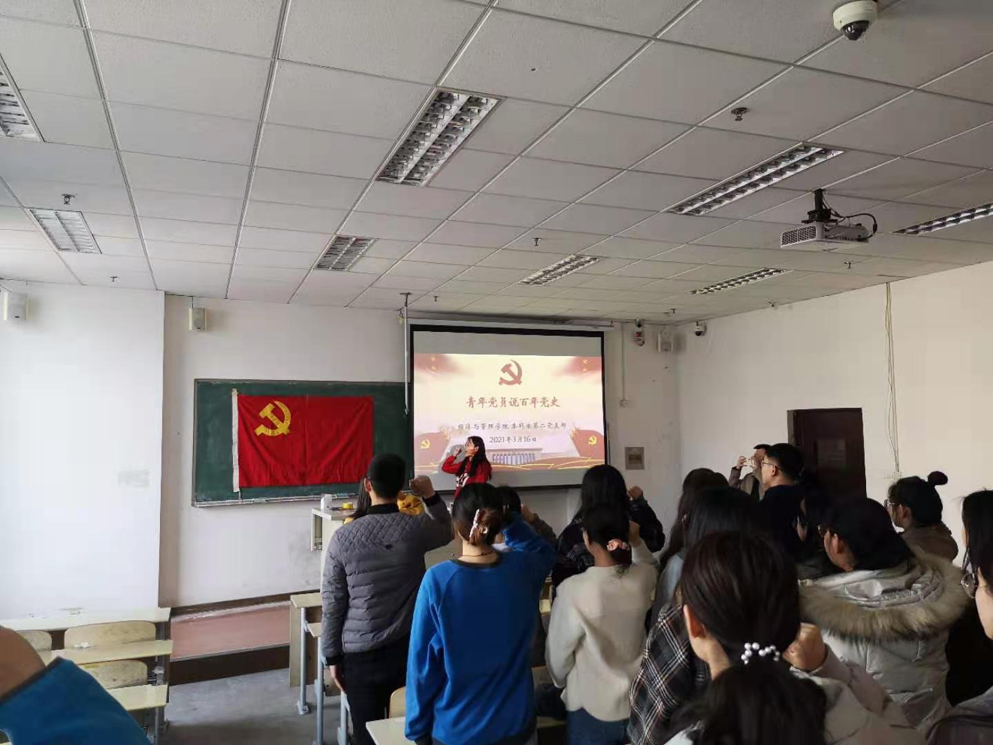 为深入贯彻落实习近平总书记的在党史学习教育动员大会上的讲话精神,推动党员学好用好党史,从党的光辉历史中汲取智慧和力量,3月16日下午,经管学院本科生第二党支部在明德楼307组织开展了“青年党员说百年党史”主题党日活动,全体党员参加了本次活动。