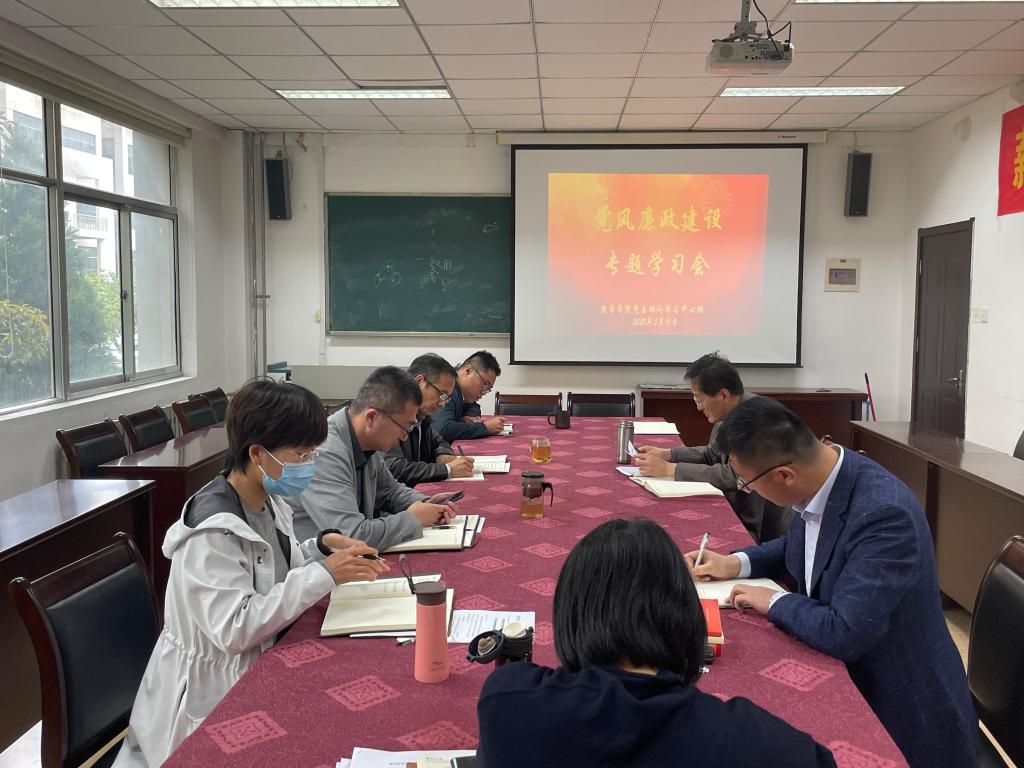5月10日,经管学院党委理论学习中心组于经管楼415会议室开展党风廉政建设专题学习。理论学习中心组成员参与学习,党委书记李德成主持学习。