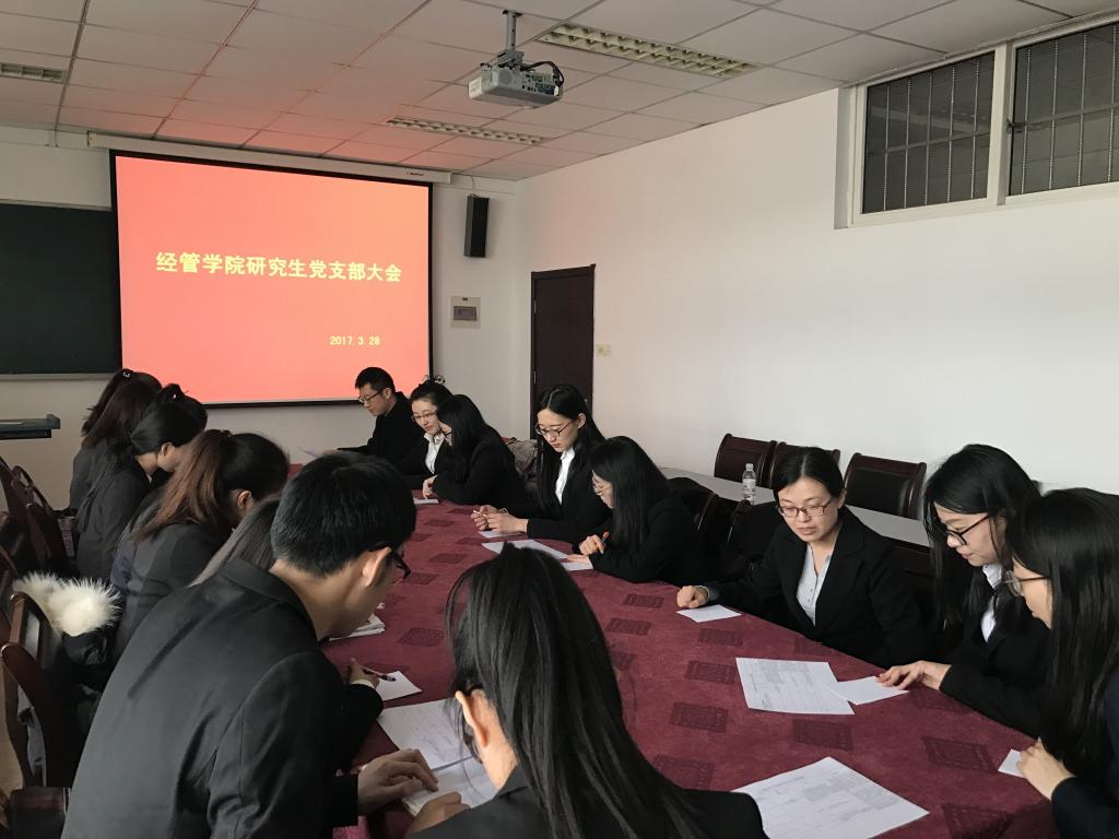 3月28日中午,经管学院研究生党支部在经管415室召开支部大会,会议由经管学院党总支副书记兼副院长刘跃宁主持,全体研究生党员参加了此次会议。