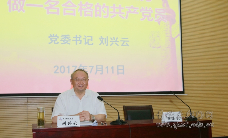 刘兴云结合学校实际,重点讲述了三个方面内容。第一,认清形势,增强工作的责任感和使命感。他深刻分析了国际国内形势、高等教育形势和学校发展形势,阐述了新形势下共产党员应该肩负的责任和使命。第二,明确任务,全面推进当前学校中心工作。他系统梳理了学校第十次党代会以来尤其是近半年来的中心工作,他明确了今后一个时期“六个到位”抓党建、“六个育人”抓思政、“双一流”久久为功、综合改革整体推进、“五有”理念落地等重点任务。第三,担当责任,努力做一名合格的共产党员。他重点谈了共产党员要做到的“四讲四有四合格”要求和内涵,要求各位党员要勇担当、做先锋。