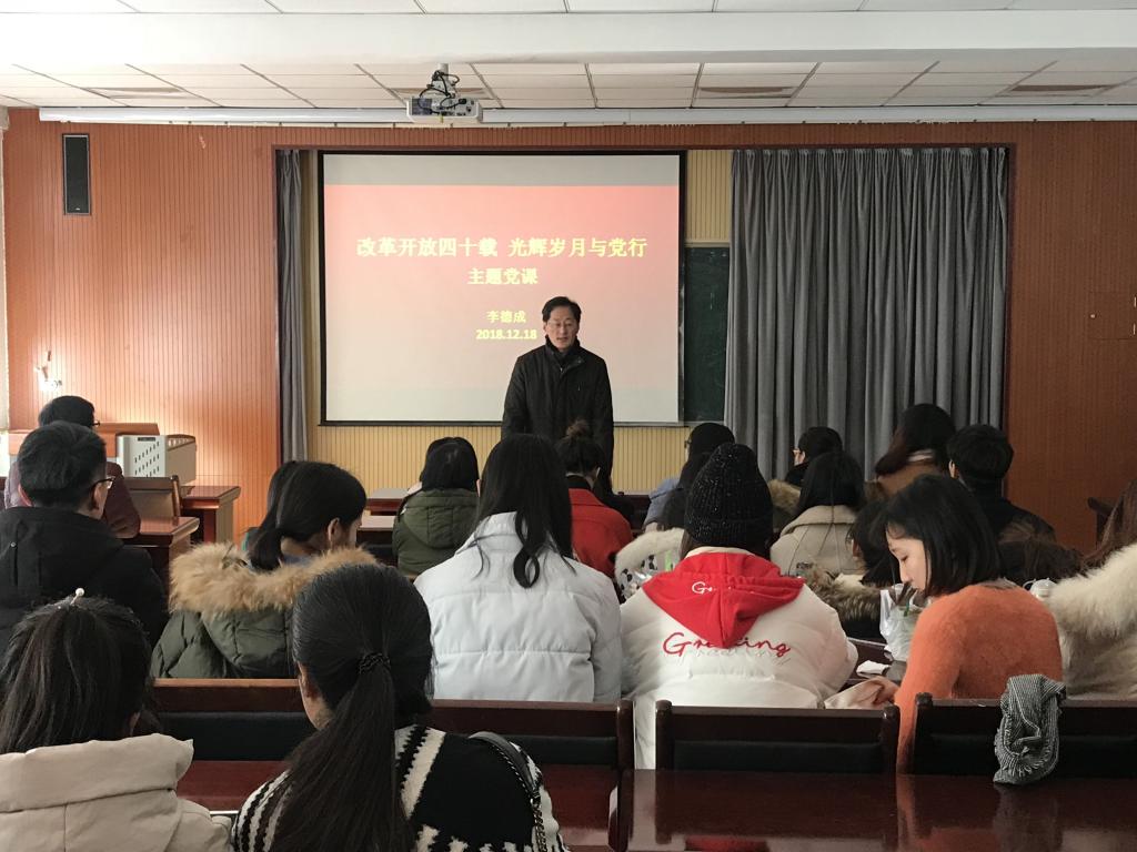 参观开始前,党总支书记李德成给全体学生党员上了《改革开放四十载 光辉岁月与党行》的主题党课。他带领大家回顾了祖国改革开放四十年的巨大成就,对学生党员提出了三点要求:一是希望广大学生党员要有理想信念,二是希望大家要树立全心全意为人民服务的思想,三是要求大家要加强学习,坚定“四个自信”,增强“四个意识”。