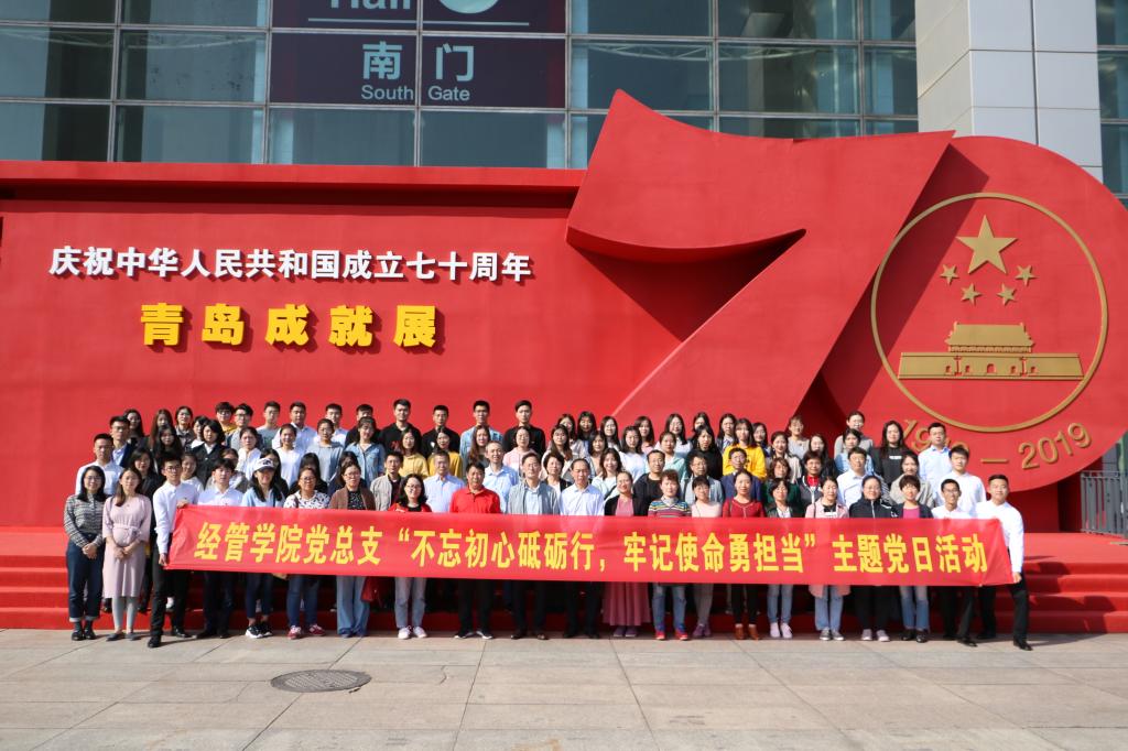 为深入贯彻落实习近平新时代中国特色社会主义思想,扎实推进“不忘初心、牢记使命”主题教育深入开展,根据学校统一部署和《中共bat365官方官网经管学院党总支关于开展“不忘初心、牢记使命”主题教育的实施方案》,10月12日,经管学院党总支组织全体师生党员赴青岛国际会展中心,参观庆祝中华人民共和国成立70周年青岛成就展,开展“不忘初心砥砺行,牢记使命勇担当”主题党日活动,确保主题教育落到实处、取得实效。