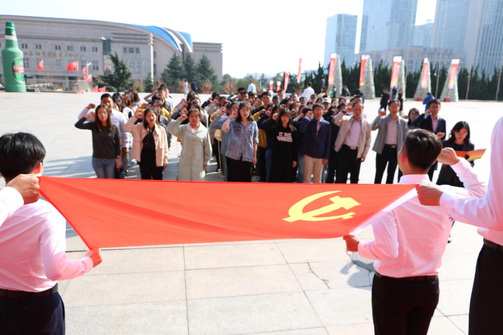 随后,全体党员在鲜红的党旗下怀着无比激动的心情举起右手,握紧拳头,庄严宣誓,重温入党誓词,进一步坚定理想信念,激励自己不断进取,奋斗终身。