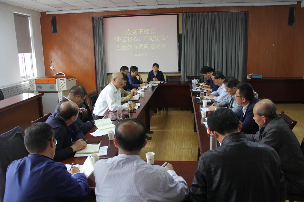 座谈会上陈克正强调,开展“不忘初心、牢记使命”主题教育,是以习近平同志为核心的党中央统揽伟大斗争、伟大工程、伟大事业、伟大梦想作出的重大部署,是推动全面从严治党向纵深发展、把党的自我革命推向深入的重大举措,是全校上下坚守为国育才之初心、牢记立德树人之使命、推动高质量发展、加快建设“双一流”和“五有”高水平大学的重大契机。广大党员干部一要按照主题教育的要求加强学习、提高站位,通过将原文、原理学深悟透,增强干事创业的本领,不断迎接新问题、新挑战;二要认清形势,明确学校、学院发展目标和任务,确保高质量发展。要进一步扩大对研究生、博士生的培养,实现整体上从“有没有”向“好不好”的转变,要激发教师内生动力,实现科研建设的“顶天立地”;三要开拓创新,担当作为,进一步落实服务地方、服务行业的责任和需求,求真务实、真抓实干,争取在大师、大奖、大项目、大平台、大资金方面实现突破,助力学校高水平发展;四要做好服务工作,进一步完善校网络反馈平台建设,切实解决师生普遍关注的痛点难点问题,增强师生获得感,落实好立德树人的根本任务。