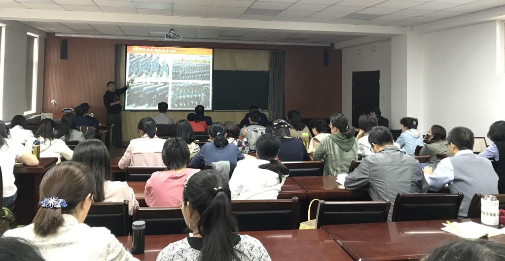 随后,市场营销系郭慧志老师为大家带来了国庆庆典阅兵的专题报道,从我国军事实力、综合国力、大国崛起等角度,生动的为全体党员上了一堂爱国主义教育课。