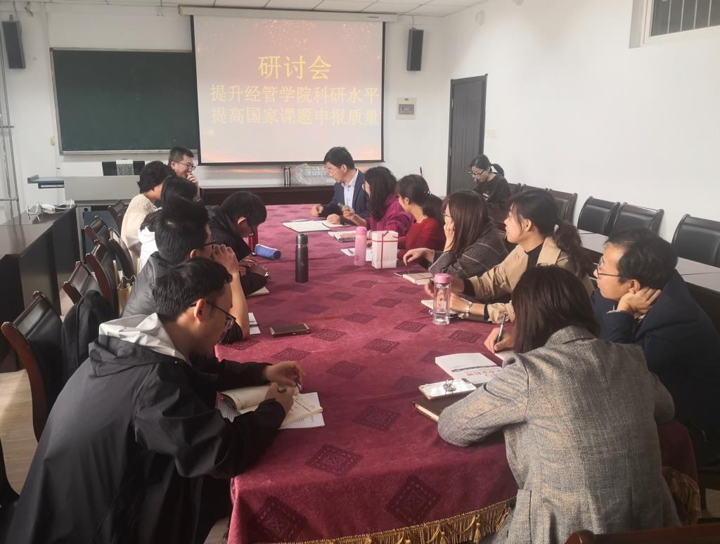 为了深入开展“不忘初心、牢记使命”主题教育,按照陈校长在我院调研时提出的“科研强校、人才兴校”战略理念,经管学院“提升经管学院科研水平,提升国家课题申报质量”研讨会于2019年10月22日中午,在经管楼415隆重举行。会议由经管学院副院长杨友才教授主持,学院申报国家课题、新引进教师和热爱科研的教师代表参加了此次研讨会。