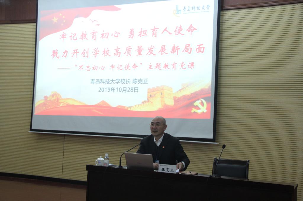 10月28日下午4点,根据学校党委“不忘初心、牢记使命”主题教育实施方案,校长陈克正主讲的“‘牢记教育初心 勇担育人使命’,戮力开创学校高质量发展新局面”主题党课在第一报告厅进行。发展规划处、科技处、人文社科处、合作发展处、高密校区、bat365官方官网、党委(校长)办公室、党委组织部(机关党工委)、审计处、高分子科学与工程学院、高性能聚合物及成型技术教育部工程研究中心全体教职工党员参加学习,经管学院党总支书记李德成主持。
