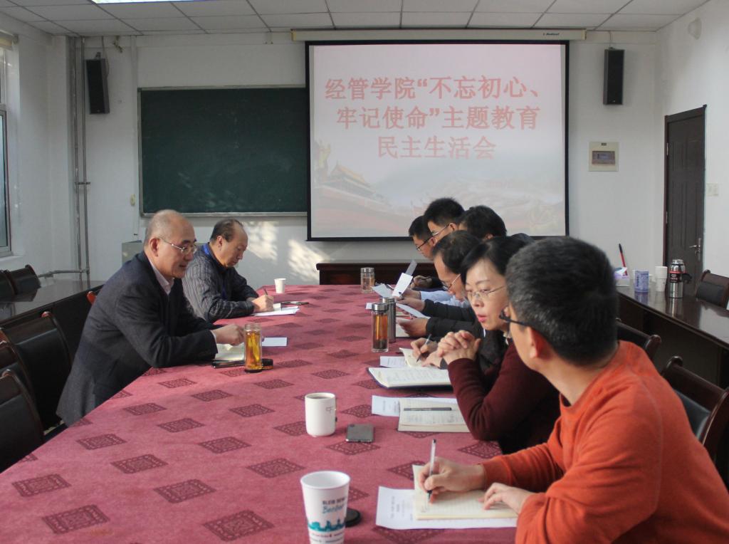 为深入学习领会习近平新时代中国特色社会主义思想,贯彻落实学院“不忘初心、牢记使命”主题教育学习成果,按照学校主题教育活动有关要求,12月5日下午,经管学院专题民主生活会于经管楼415会议室召开。经管学院领导班子成员王志宪、李德成、董华、杨友才、刘跃宁及气候变迁与能源可持续发展研究院副院长李长胜参加会议,学校党委副书记、校长陈克正、纪委调研员赵丰以及其他总支委员列席会议。会议由经管学院党总支书记李德成主持。