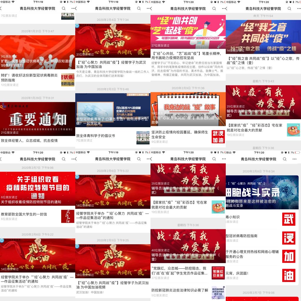 学院通过学院官网、微信官微、QQ公众号、易班等线上渠道,打造多形式、宽领域、广受众的融合平台,与抗“疫”相结合,推出多个学习雷锋精神的主题板块,通过开展“‘经’心聚力,共同战‘疫’”作品征集、“党旗红,众志城——防控阻击,我们‘战’在‘疫’起”等特色活动,对经管学子进行了一场生动的爱国主义教育,全面提升了学生的家国情怀,更加坚定了学生爱国力行的使命责任。
