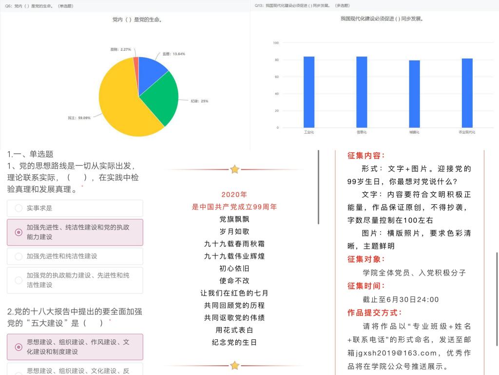 忆党史,铭党恩,强党性,促党建。学院通过线上竞答的方式举办“追寻红色足迹,牢记党建史诗”易班答题活动,各系班主任和导师鼓励并组织学生通过易班平台,在线进行知识竞答,在手指间重温党史,参与学生纷纷表示上了一堂生动的”思政课”。