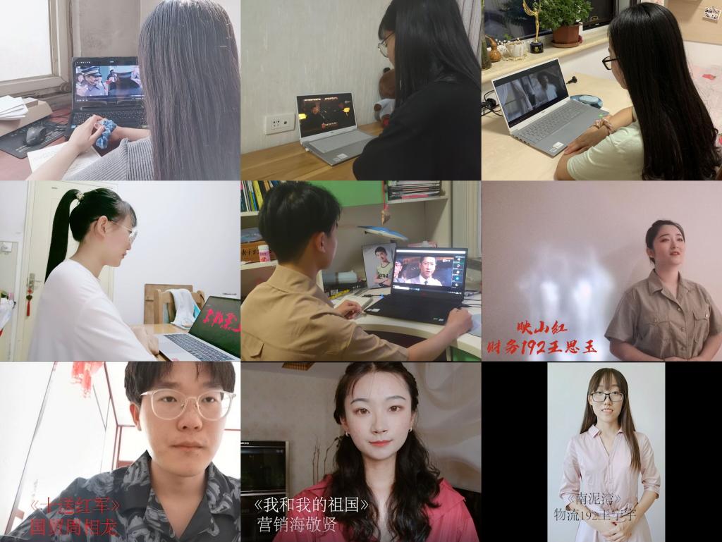 经典新学,红色领航。学院举办线上“‘影’入人心”红色影片观赏,带领全体学生重温《建国大业》、《建党伟业》、《我和我的祖国》等红色影片;开展“红歌嘹亮”经典歌曲演唱、“经典‘咏’流传”红色故事诵读,鼓励学院师生合作献声,共同演绎,师生们感情真挚、字字铿锵,用作品诠释了爱国爱党精神。学生党员肖映彤说:“这是一次用真情聚力梦想的红色教育,作为新时代党员,在祖国和人民需要我们的时候,‘我上’是党员的誓言,‘不退’是青春的姿态!”