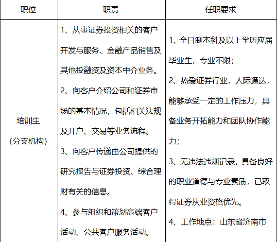 1.招聘机构:中信证券(山东)济南阳光新路营业部;