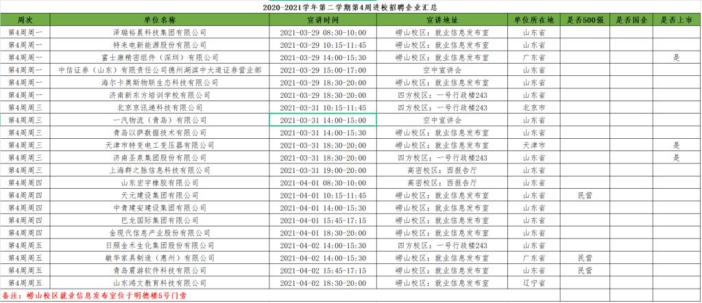 2020-2021学年第2学期第4周,进入我校进行宣讲招聘的企业名单如下,均为涉及经管学院相关专业及不限专业的企业。请广大毕业生同学根据个人情况,按时参加企业宣讲会。